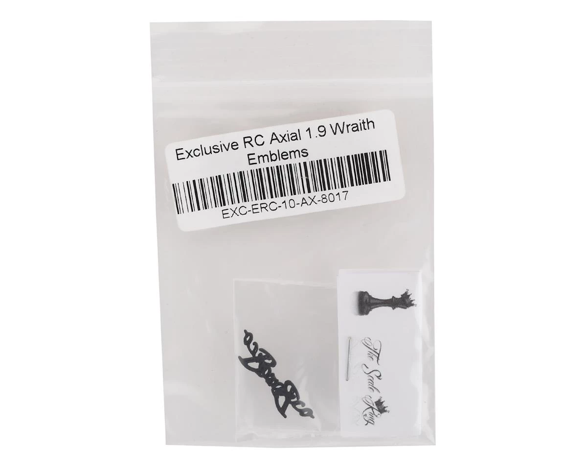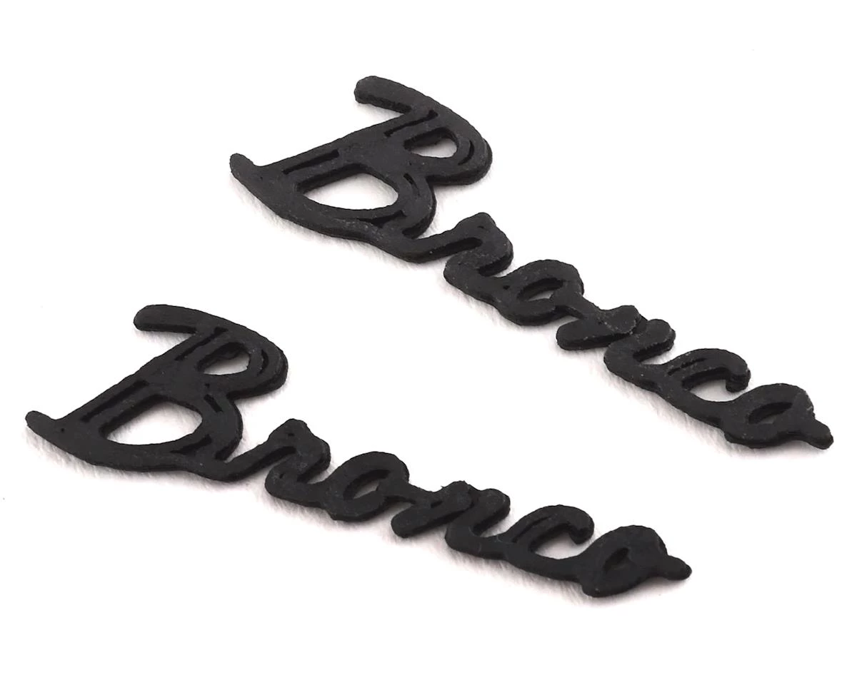 Exclusive RC Axial 1.9 Wraith Emblems are 3D printed, miniature Bronco badge replicas that will allow you to create a more realistic looking, Bronco inspired Wraith 1.9 body. This carbon nylon print is the perfect compliment to the Exclusive RC Wraith 1.9 grill (EXC-ERC-10-AX-8015) and will help to replicate the look of the full size truck. The parts are easy to install using your preferred adhesive and can be painted using your favorite plastic model paint.