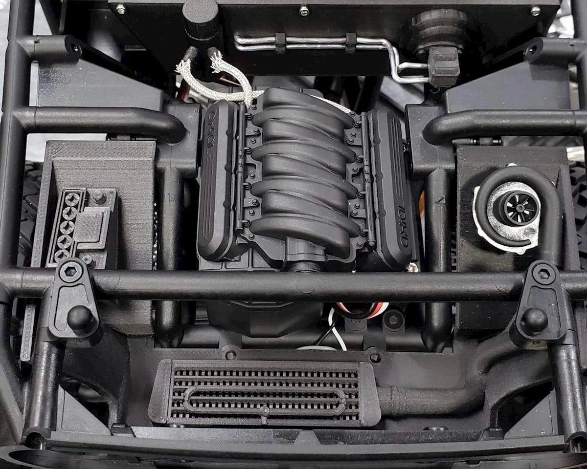 The Exclusive Axial 1.9 Wraith Firewall adds details that will finish off the engine bay on your Wraith 1.9. This high quality carbon nylon print features master cylinder, plumbing and catch can details. The firewall installs using stock hardware and existing holes in the cage, and can be painted using your favorite plastic model paint. The included master cylinder plumbing allows you to add realistic brake line details that will bring your engine bay to life. Plus, for an even greater level of detail you can plum the catch can with Tamiya 2.0mm braided hose (TAM12662 – not included).