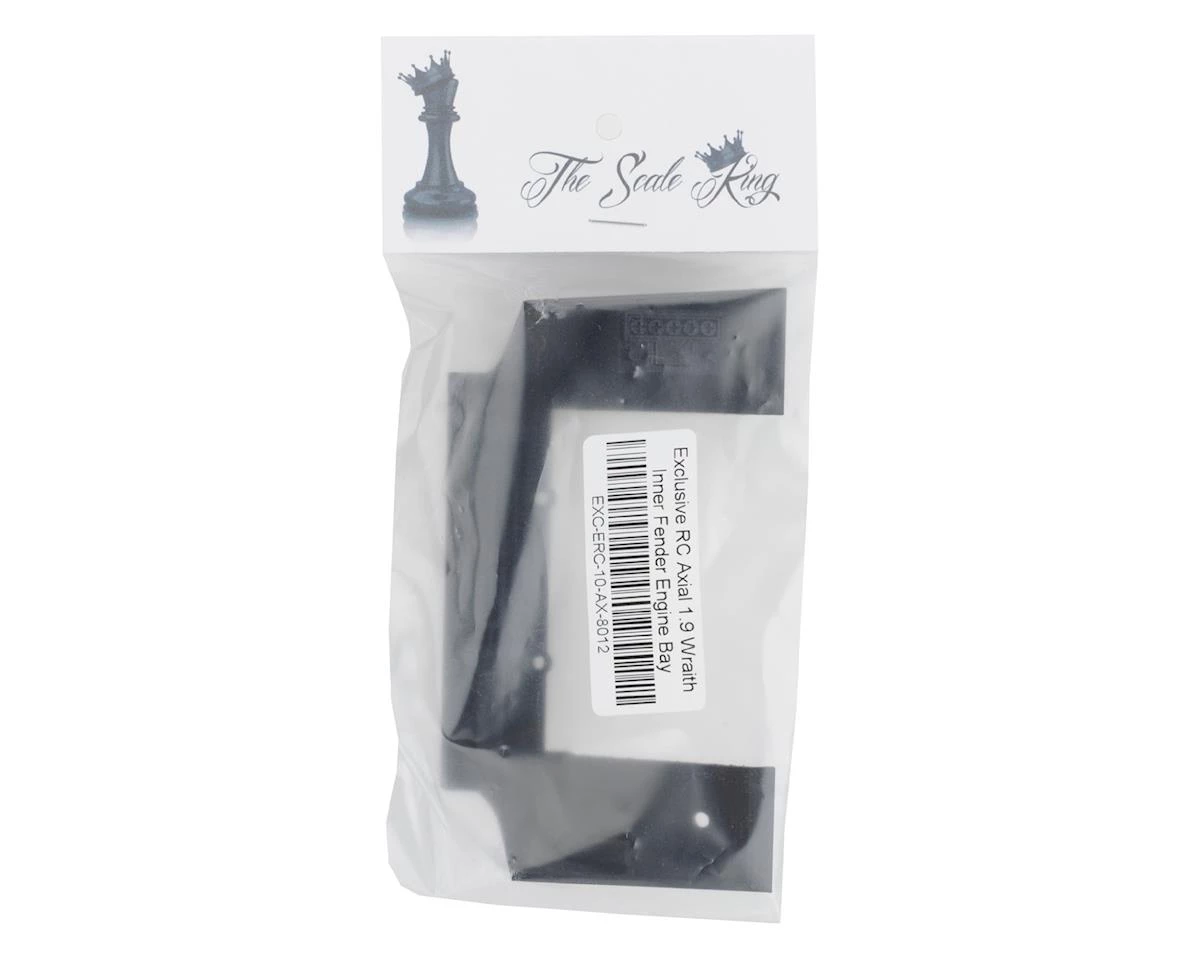 The Exclusive RCÂ Axial 1.9 Wraith Inner Fender Engine Bay adds details and functionality under the hood of your Wraith 1.9. This high quality carbon nylon print features battery, intercooler and intercooler plumbing details, with a hole to mount the turbocharger that is included with the Wraith 1.9. The engine bay installs using stock hardware and existing holes in the cage, and can be painted using your favorite plastic model paint.Â