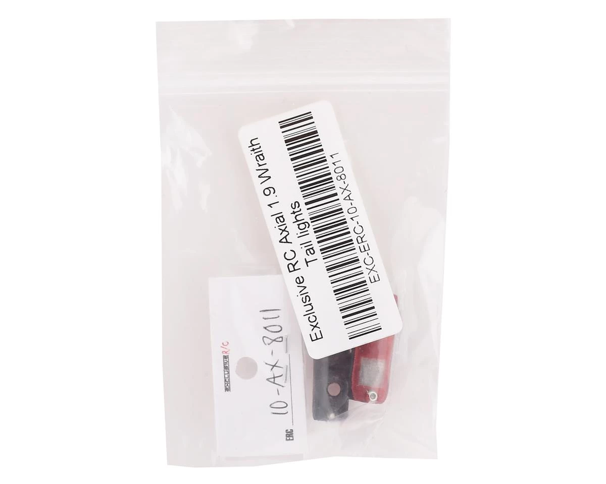 The Exclusive RCÂ Axial 1.9 Wraith Tail Lights add a greater level of realism to the Wraith 1.9 body. These tail lights feature buckets that will accept 3mm LED lights, with translucent red lenses to let the light shine through. This critical detail will add a great finishing touch to your build. Hardware included.