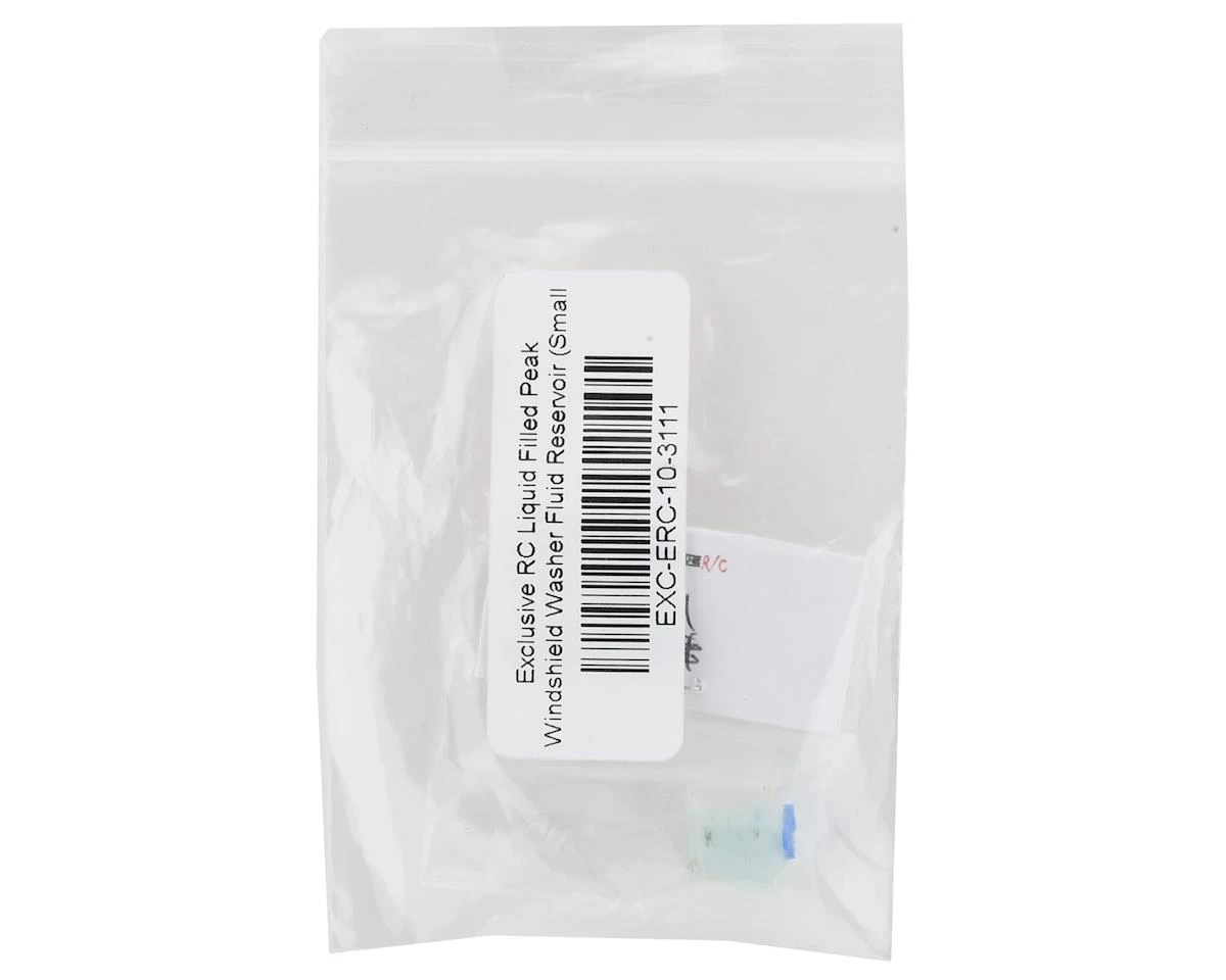 The Exclusive RC Liquid Filled Peak Miniature Windshield Washer Fluid Reservoir features details that will add convincing realism to your custom scale truck engine compartment. This miniature scale replica reservoir is liquid filled, allowing the fluid inside to splash realistically as your rig makes its way through the trail. Plus, the extra contrast between the clear reservoir and the fluid inside will help bring your scale photos to life! The “Small” reservoir measures approximately 15mm deep, 10mm wide and 14mm tall at the cap.Â