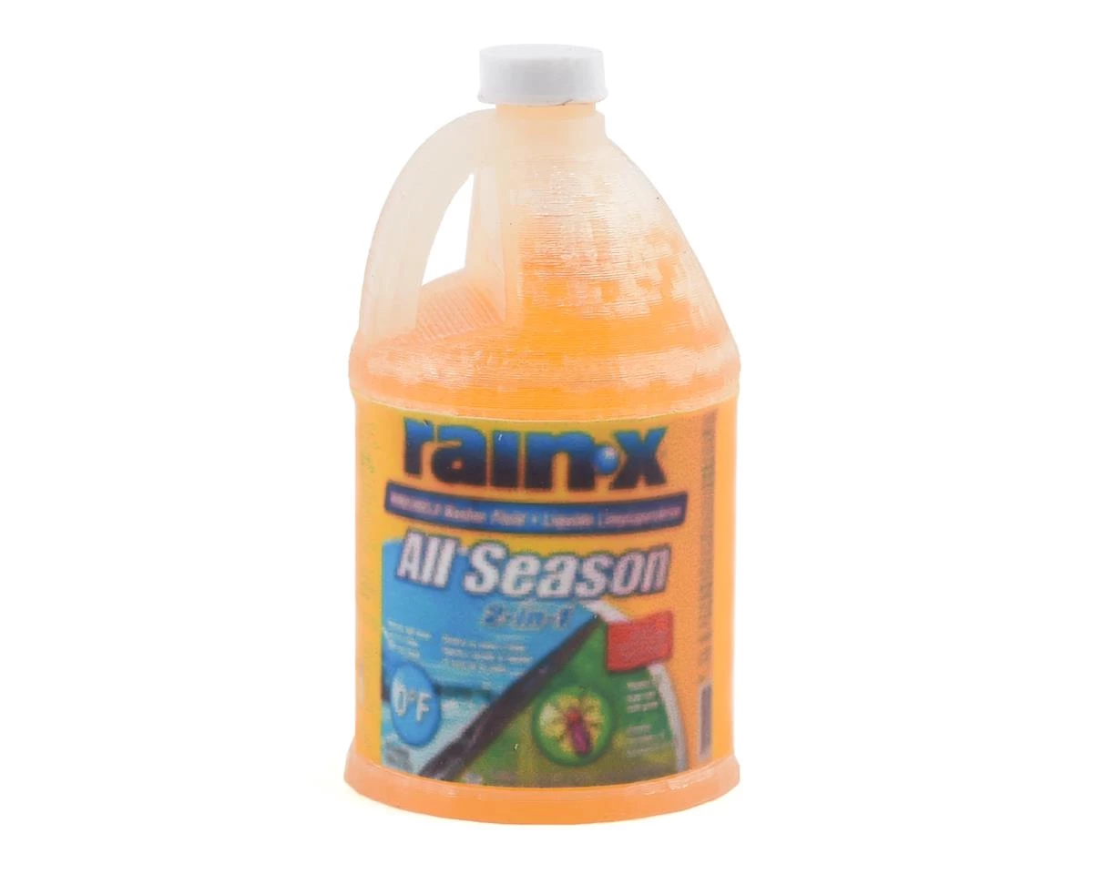 The Exclusive RC Liquid Filled “Rain-X” Anti-Freeze Jug is a fluid filled 3D printed replica that features label, lid and handle details – as well as an orange fluid inside to help give the part an incredibly realistic look. This is a great accessory for the back of your truck, or inside your scale garage. Bottle measures 20mm wide, and 35mm tall.