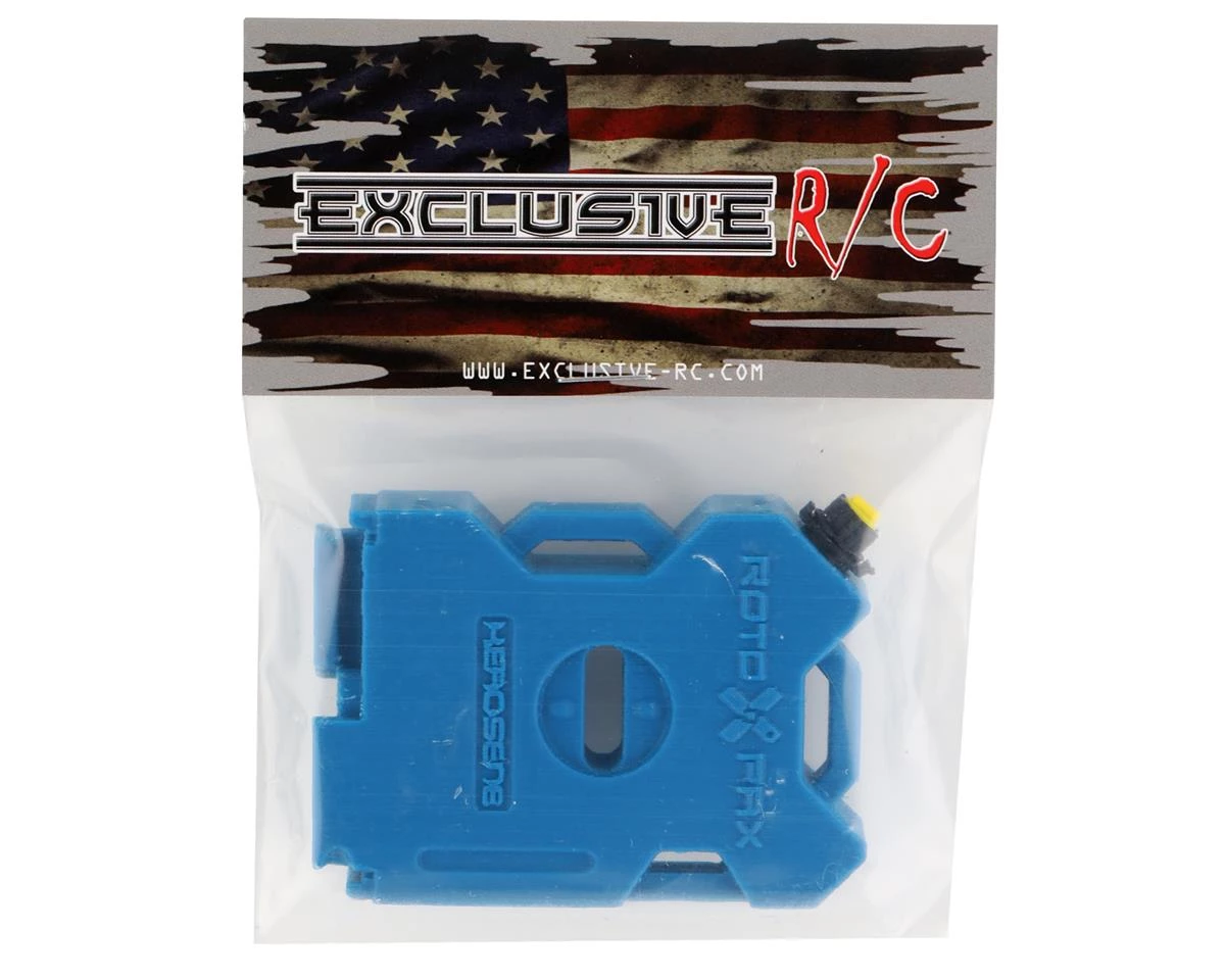 The Exclusive RC SCX6 1/6 Scale 2 Gallon Rotopax is a great way to add detail to your truck. These Rotopax are designed in different colors to make easy reference of what each container holds. This blue container is designed for Kerosene diesel storage and features a scale fuel cap. Package includes one faux Rotopax can.