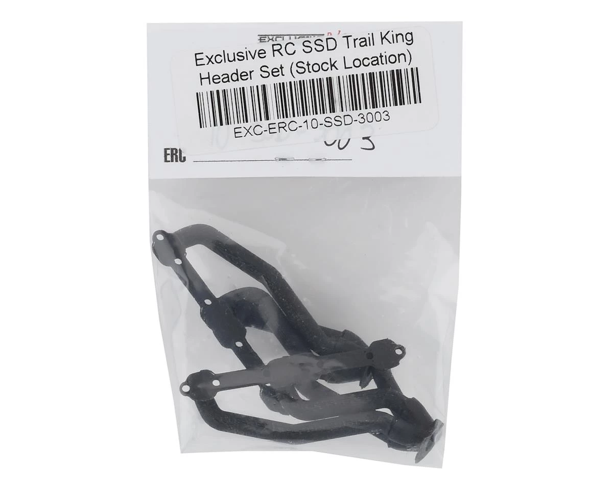Exclusive RC SSD Trail King Headers are a must have addition to your Trail King. The Scale King stepped up, and designed headers specific for each engine cover position, so no matter what engine position you are building on, you have headers to work with the setup. These stock position headers were designed to fit the stock engine position (no spacer), but can be still be used with any spacer position, and will give you the look of a short tube header. They are mounted to the engine cover with 2x5mm hardware, but for the ultimate in scale scale detail, combine these with SSD scale bolts (SSD00028).