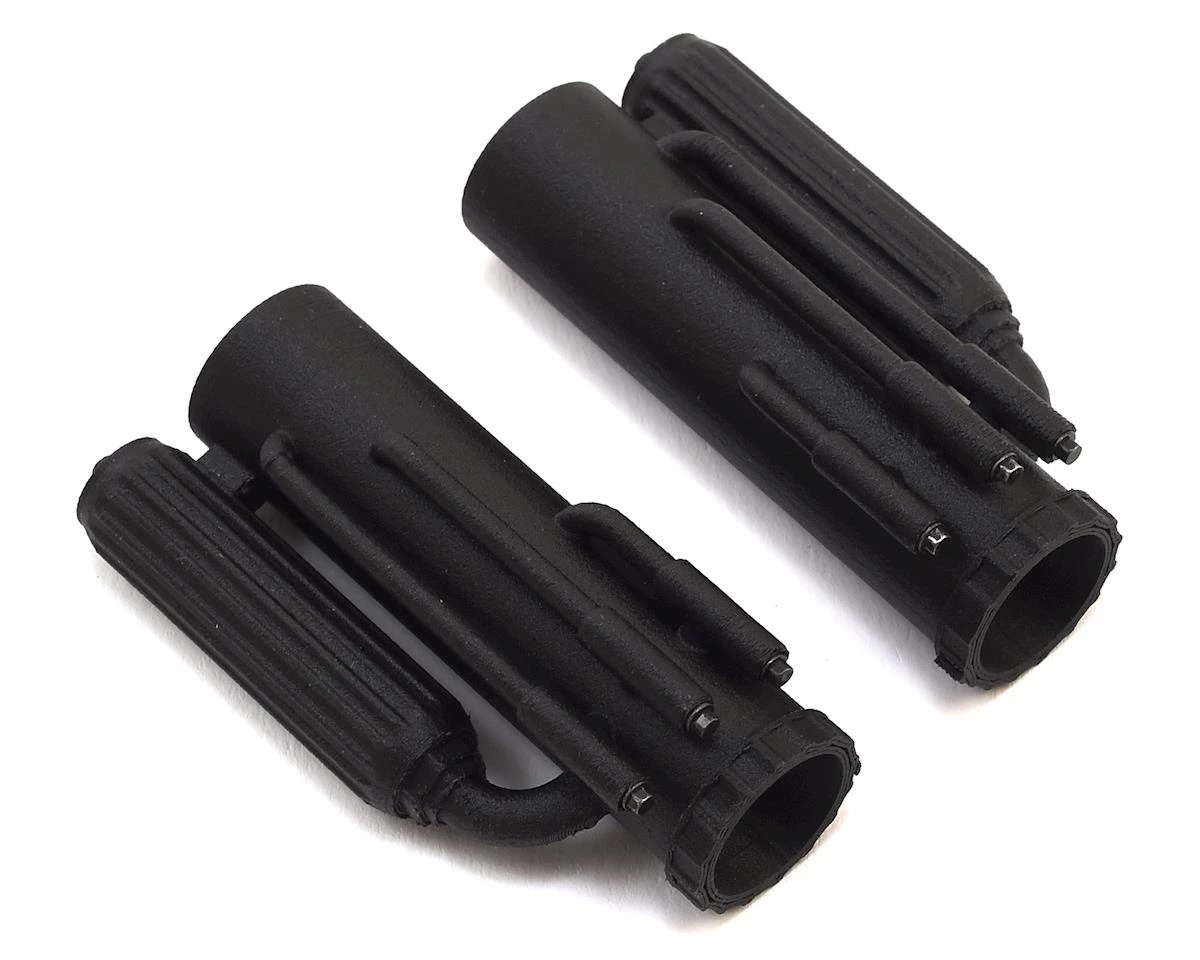 The parts are easy to install! Simply slide it over the stock shock body, and the part is held in place by the super tight tolerances. These are printed in carbon nylon filament. Carbon nylon creates stronger parts with finer detail than PLA filament. Plus, carbon nylon sands better and is easier to paint, so you can add more details if you choose.